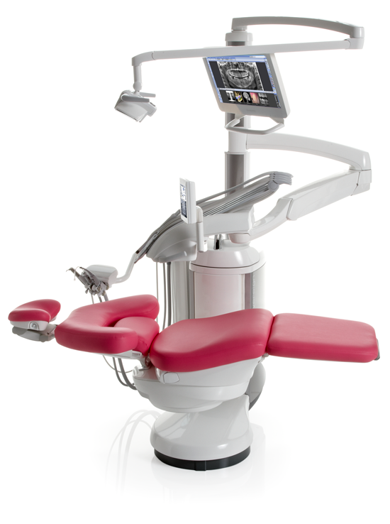 The unique upright chair position is ideal for treatments performed with the patient seated, such as prosthodontics and orthodontics, or even tooth extractions. With the patient seated, correct jaw lines enable easy access to the treatment area. The dentist can maintain an ergonomic posture and has plenty of room around the chair.